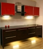 Кухонный гарнитур Корпус: ЛДСП Фасад: Шпон, пластик в алюминиевом профиле Столешница: Искусственный камень Фурнитура: Blum Мойка: нержавеющая сталь полированная, врезная под столешницу. Наполнение: Сушка хром, ведро — пластик, лоток под столовые приборы — нержавейка, выкатные корзины. Стоимость: от 120 000 рублей.