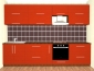 Кухонный гарнитур. Фасады: МДФ в пленке Глянец Красный, фрезеровка «Горизонталь 2». Корпуса ДСП Венге. Столешница постформинг 28 мм.