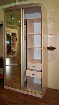 Шкаф-купе Материал: ЛДСП цвет «Дуб Молочный», двери в системе алюминий «ARISTO». Размеры: 1350х2400х450мм Стоимость 15 370 руб. Возможны любые цветовые решения ЛДСП. Разнообразный дизайн фасадов с применением рисунков и фотографий (а также собственное фото).