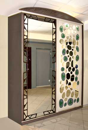 Шкаф-купе Платик с декоративной обработкой. Зеркало с пескоструйным рисунком с подкрашиванием. Цена от 55 000 руб.